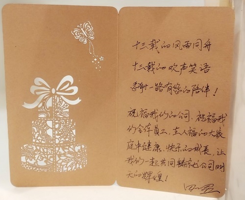 田總對公司成立13周年寄語       2018年9月20日,是四川人福醫(yī)藥有限公司成立13周年紀念日。為讓員工感受周年慶氛圍,公司特準備了周年慶小活動,下面我們來重溫一下現(xiàn)場活動吧。   |