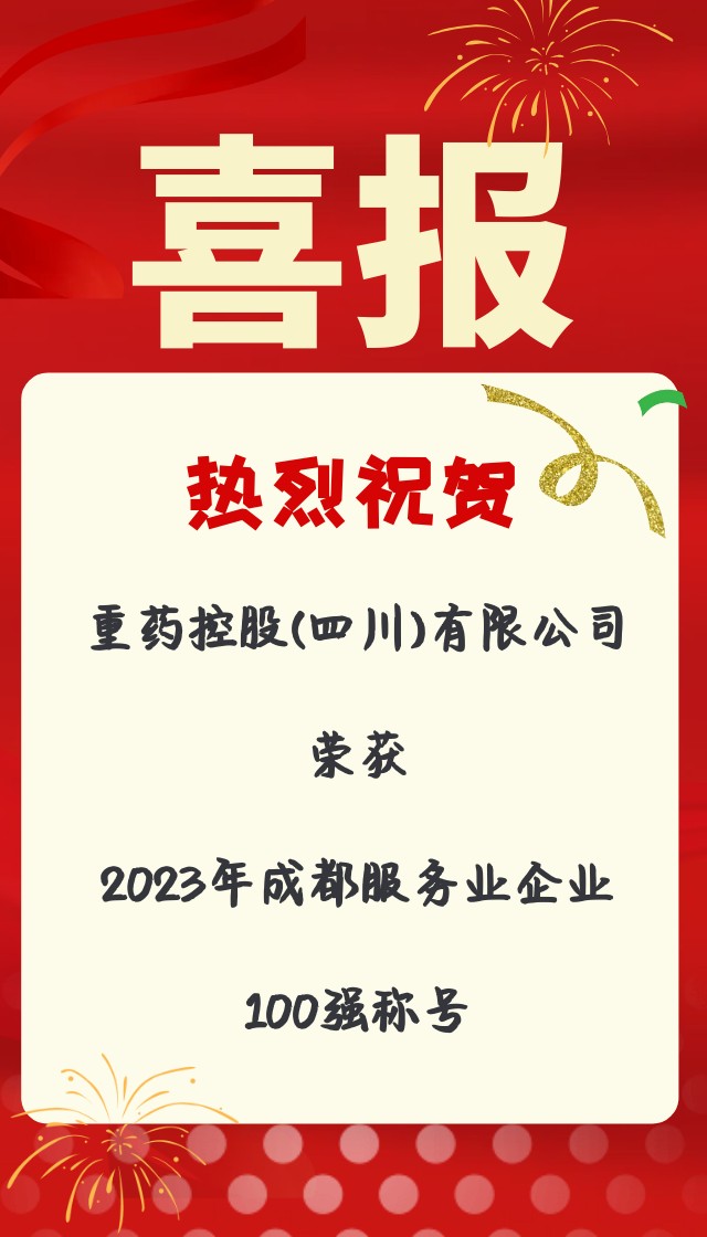 喜報丨重藥控股(四川)有限公司榮獲2023年成都服務業(yè)企業(yè)100強稱號