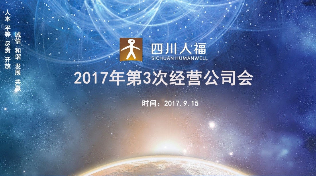 2017年9月15日,四川人福2017年第三次經(jīng)營公司工作會在成都新東方千禧大酒店召開。四川人福經(jīng)營管理團(tuán)隊(duì)、各事業(yè)部總經(jīng)理、各子公司第一負(fù)責(zé)人參加了會議。